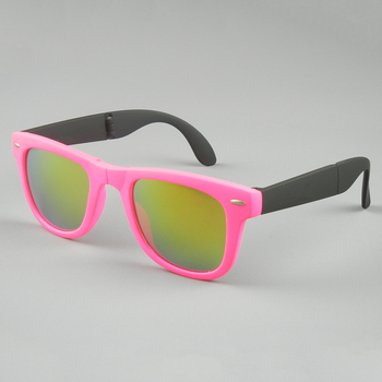 Venta al por mayor logotipo personalizado gafas de plástico lente de espejo negro Rosa protección UV400 Unisex verde/amarillo bolsillo compacto plegable